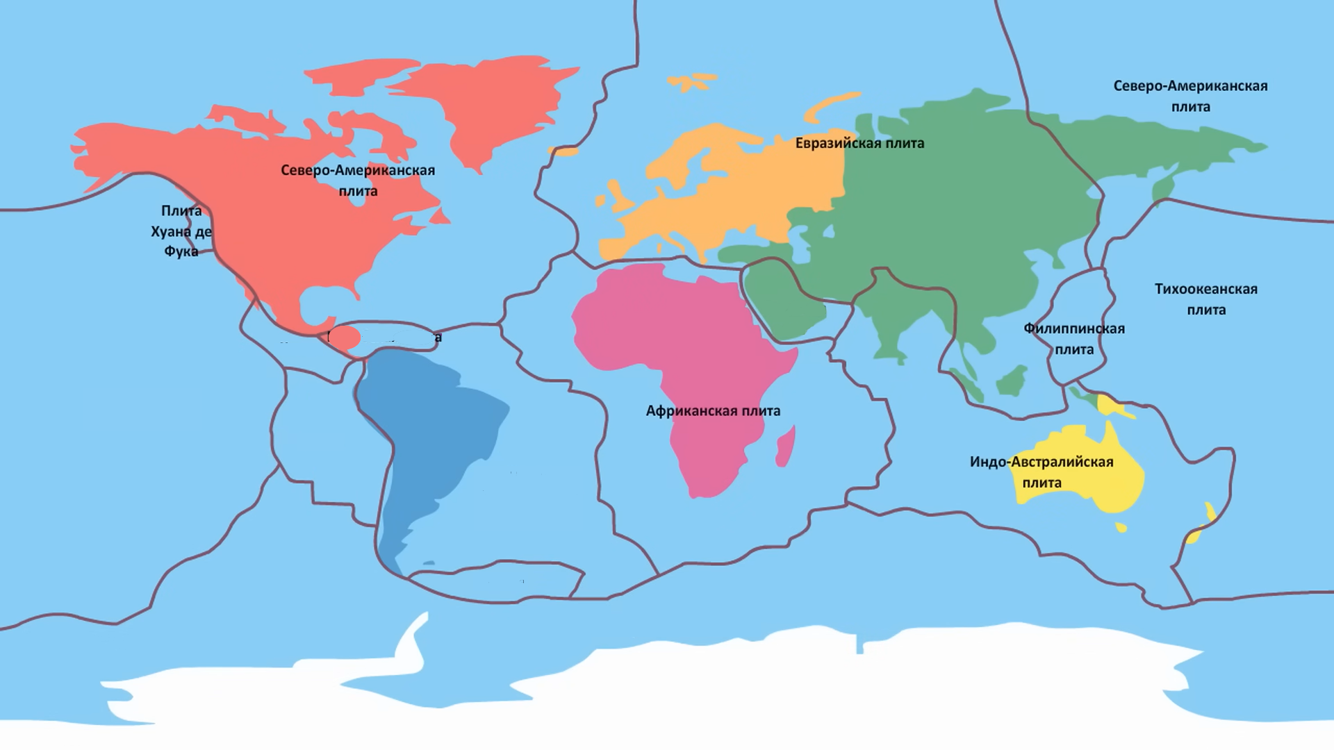 Соотнесите названия литосферных плит с соответствующими цифрами на карте.